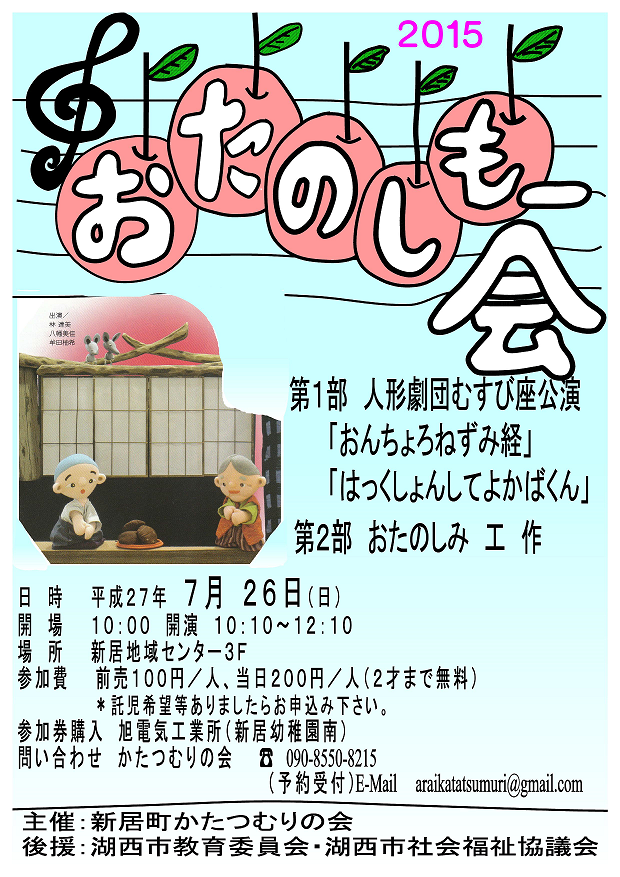 参加料:前売り券100円 当日券200円 ※2歳まで無料