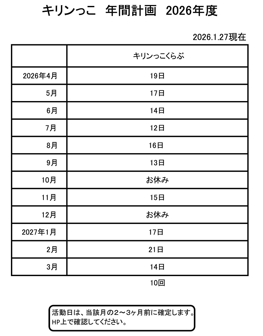 トップ > キリンっこ > 年間計画表