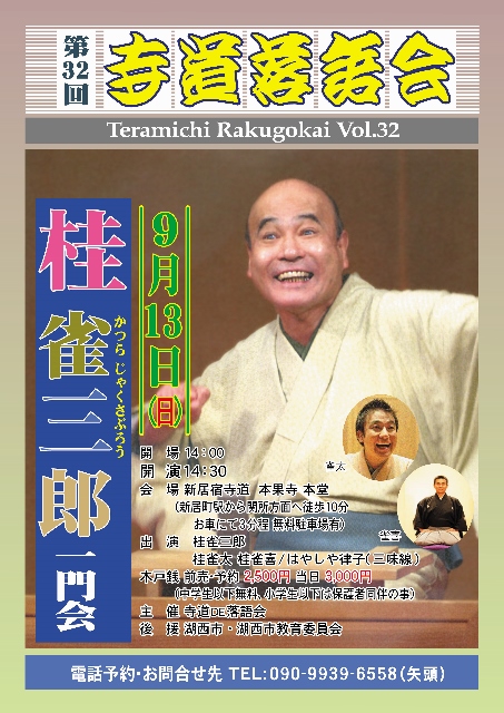 「歌う落語家」桂雀三郎師匠と若手の雀喜さん、鯛蔵さんのご出演です!