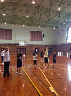 水分補給後は、「転がしドッチ」や男女対抗の「ドッチボール」を楽しみました。