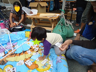 スタンプラリーでは外国籍の子供と一緒にブースを回ってくれた。
