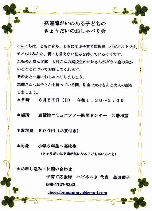 「発達障がいのある子どものきょうだいのおしゃべり会」