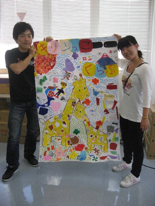 H23.9.18 とうとう 「キリンのちぎり絵」が完成しました