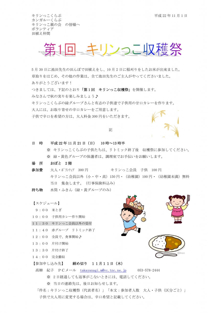 第1回 キリンっこ収穫祭 (詳細決定!)