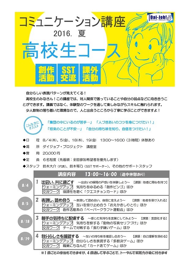夏のコミュニケーション講座「高校生コース」(2016.夏)