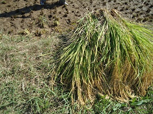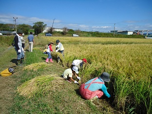 午前9時30分から池田恭子先生の田んぼにて稲刈りを行いました。