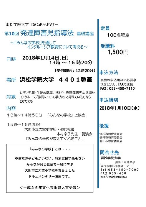 第10回 発達障害児指導法基礎講座 (平成30年1月14日)