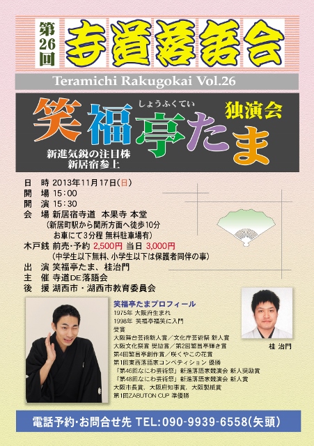 第26回 寺道落語会 笑福亭たま独演会