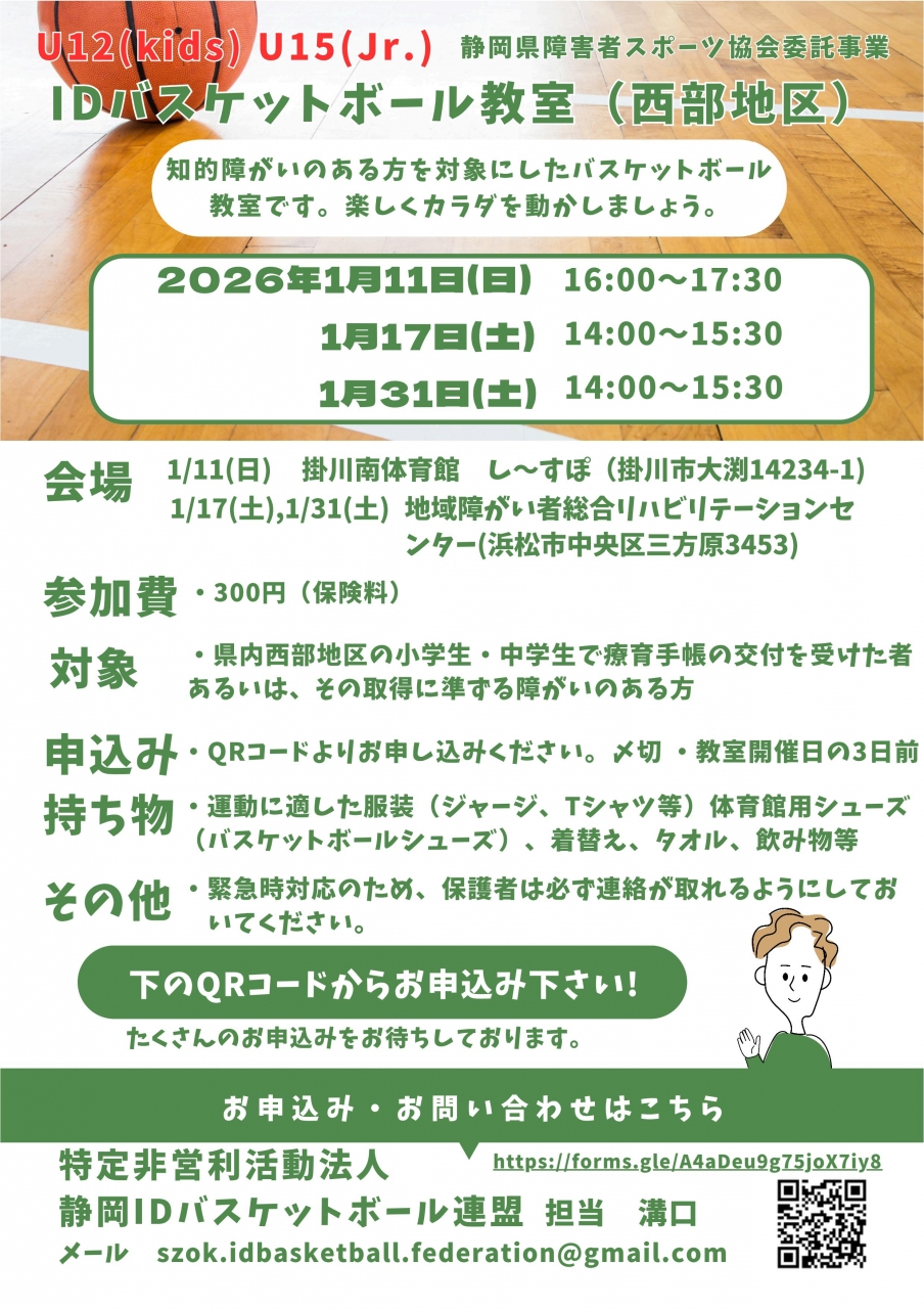2026年1月11日 掛川南体育館 し~すぽでバスケットボール教室が開催されました。