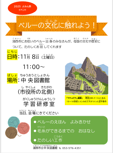11/8 よみん祭ペルー文化に触れよう!遊びに来てね!